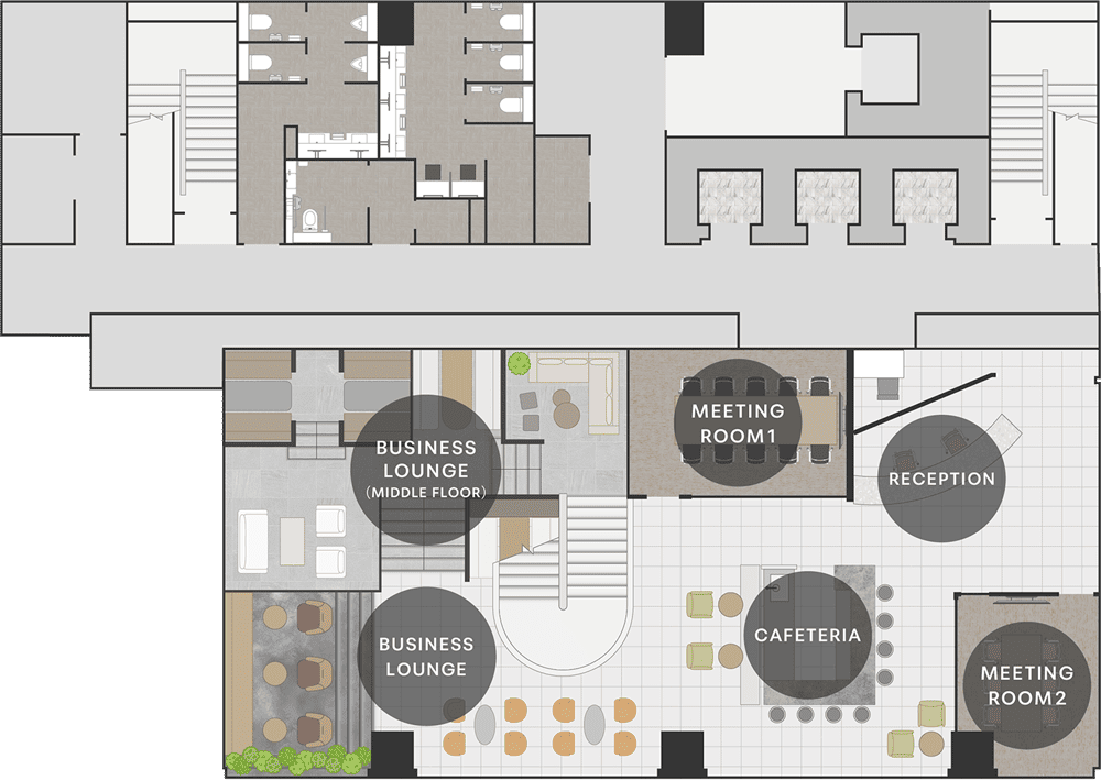 3F-7Fの入居企業様は1F・2Fの