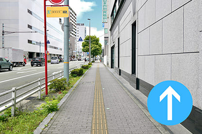 横断歩道を渡り、左(西)方向へ